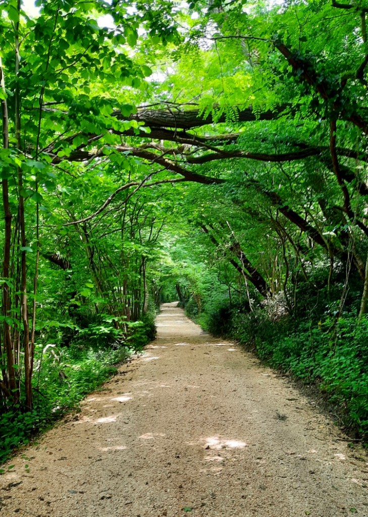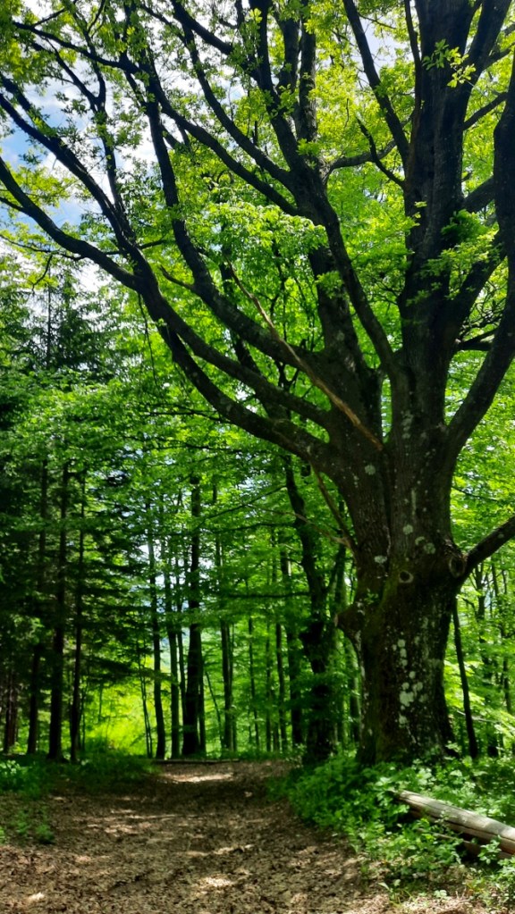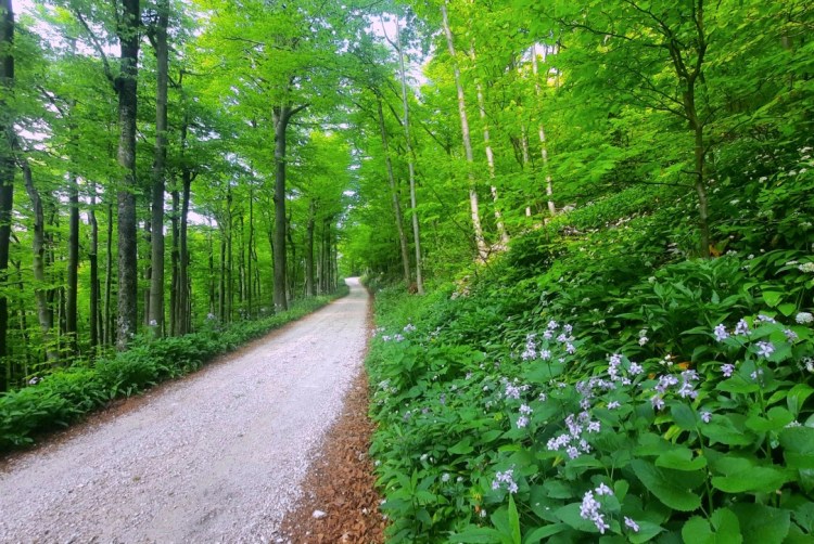 Les sentiers forestiers sont paisibles, et proposent tantôt l’odeur du bois fraichement coupé, tantôt celle des débuts de floraison sur leurs bordures. Ils sont parfois longs et monotones, mais offrent l’avantage de leur fraicheur ombragée, et la récompense arrive quand les arbres s’ouvrent pour laisser entrevoir un panorama sur les vallées alentours.