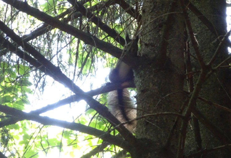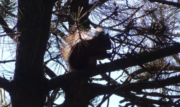 Quelques écureuils pestent régulièrement après moi et filent se percher dans les branches hautes, dérangés dans leur quête primordiale de provisions.